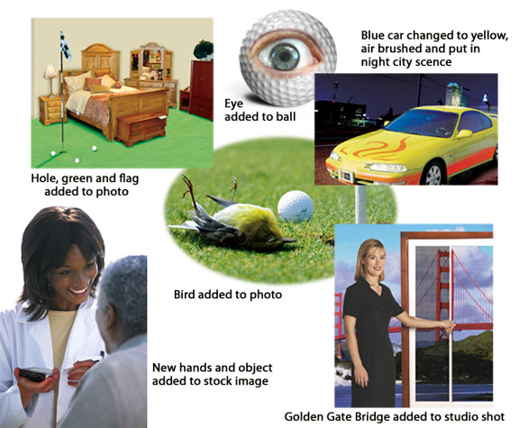 | Photo Manipulation We can alter any photo any way. You are only limited by your imagination. The graphic designer has over twenty years of e xperience and works for major ad agencies and companies. All the photos will be created using Mac computers and Adobe Photoshop. A jpg proof will be emailed to you for approval before the final artwork is emailed or shipped to you. All image files can be converted to the IBM platform if neccessary. For a quote or upload files. For more information or questions, email. The samples on this page is only a few of the projects we have done for our clients. |